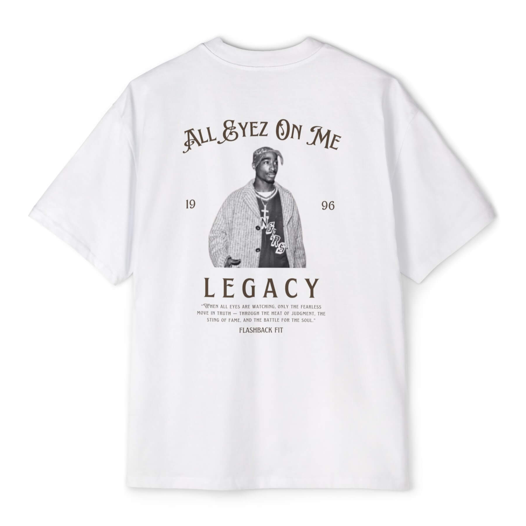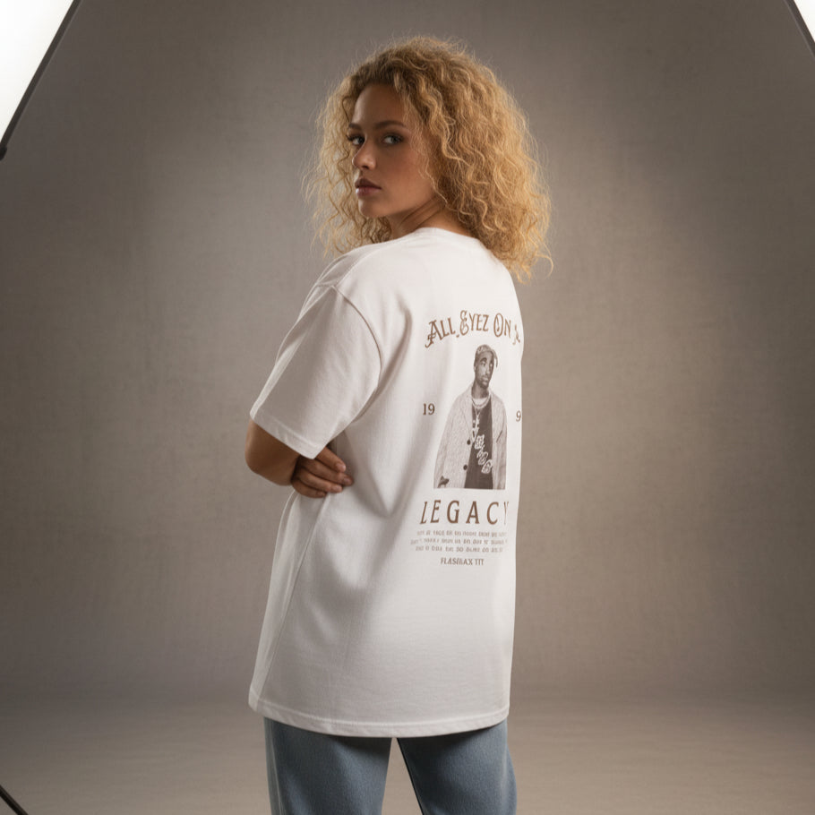 1996, השנה שבה טופאק הפך לאגדה. All Eyez On Me זו חולצה שמחזירה לרגעים שבהם כל מילה שלו הדהדה רחוב שלם. חולצה שהיא חלק מהמורשת, חלק מהתרבות, חלק מהנשמה.