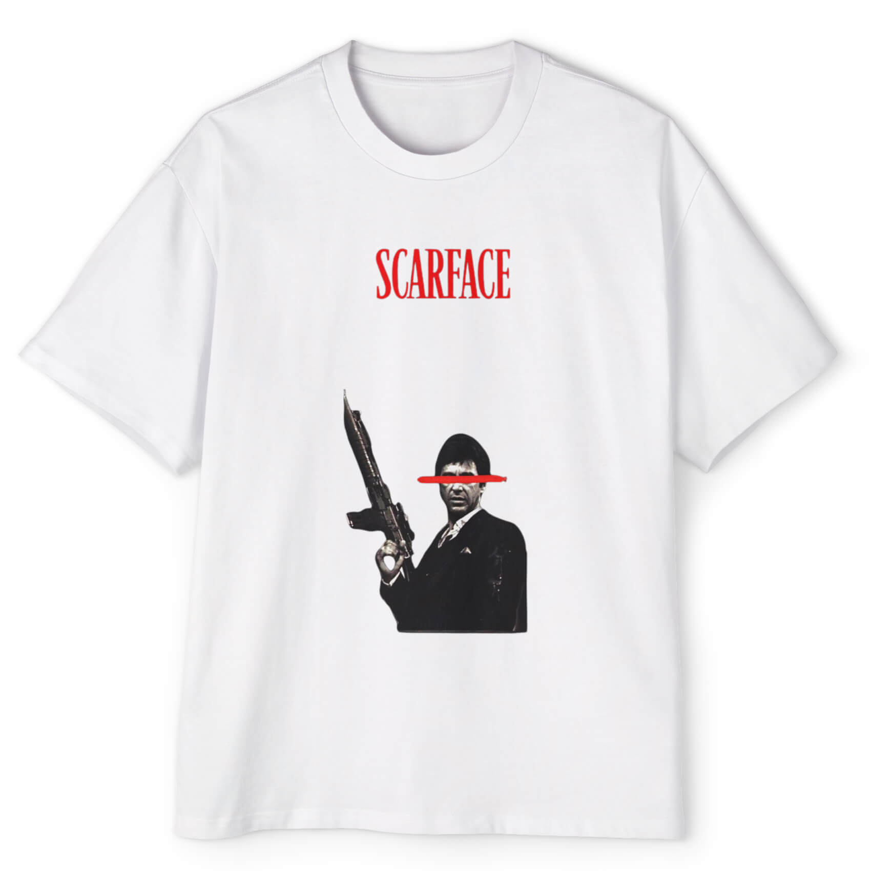 טוני מונטנה לא היה רק דמות קולנועית – הוא היה סמל לאמביציה, כוח ומרדנות. Scarface זו חולצה שמחזירה את הסטייל הקולנועי שהפך לאייקון תרבותי, מהמסך הגדול ועד הרחובות.