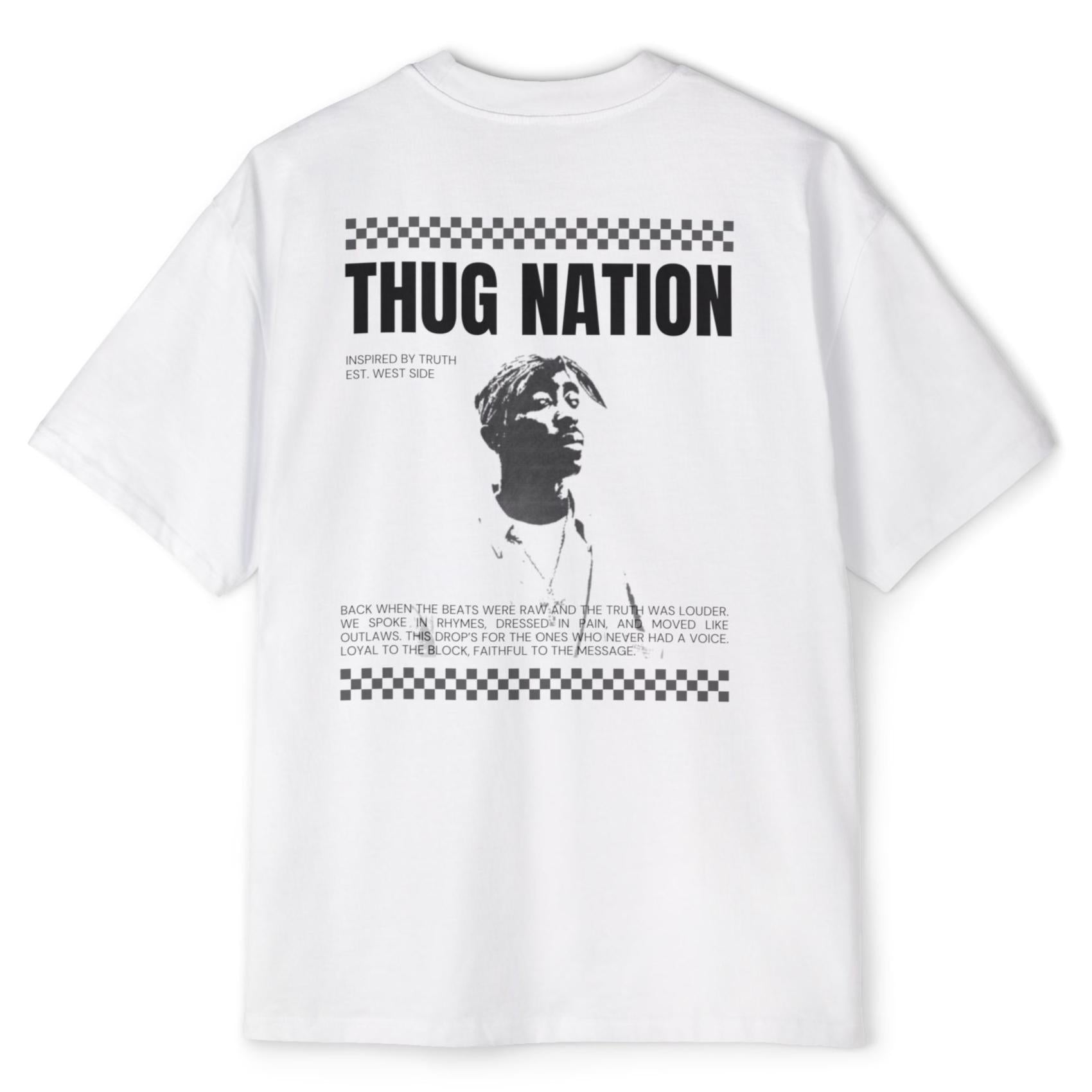 Thug Nation מביאה את הסטריט־וייב מהניינטיז הישר אל ההווה עם הדפס איכותי על גזרת אוברסייז שזורקת אותך ישר ל-LA של ה-90s.