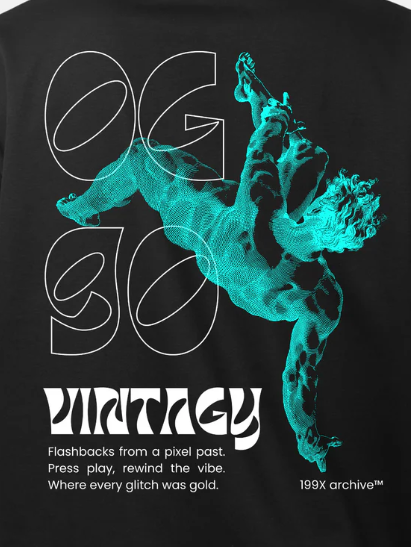 OG 90 מחזירה את הימים שבהם כל גְלִיץ' היה זהב וכל פיקסל סיפר סיפור. זו חולצה שמחברת בין נוסטלגיה של מסכי קונסולה ישנים לבין וייב עכשווי של סטריט־סטייל. פלשבק שמרגיש מוכר, אבל תמיד רענן.